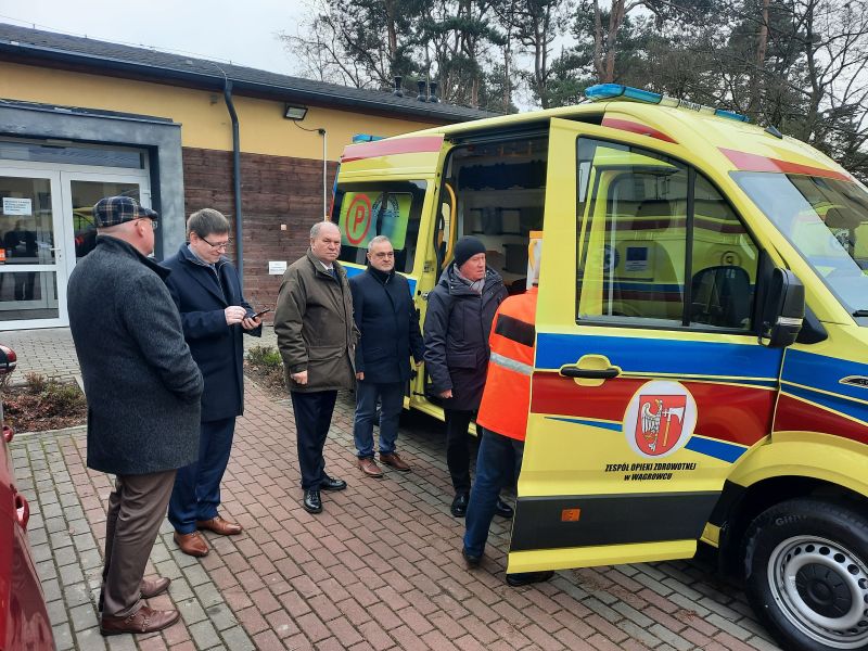 Członkowie Zarządu obejrzeli też jedną z karetek typu B. Powiat Wągrowiecki otrzymał dofinansowanie na zakup dwóch karetek typu B i jednej karetki transportowej w ramach środków na ochronę ludności o obronę cywilną. Koszt jednej karetki typu B to ok pół miliona złotych.