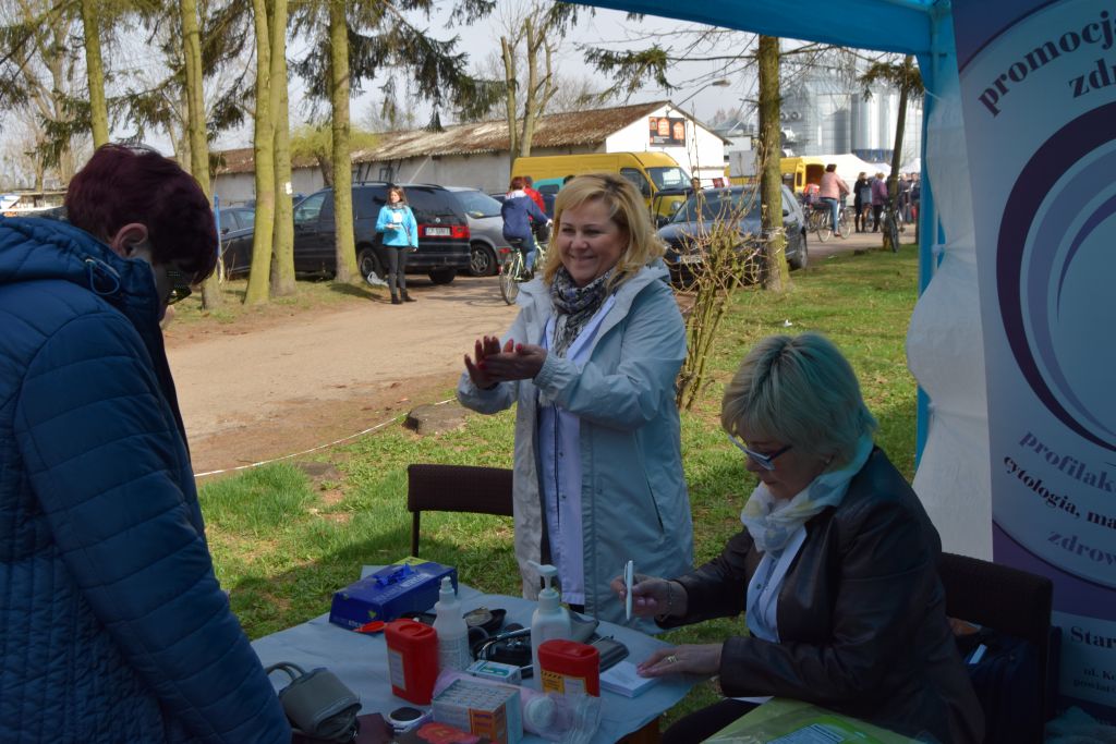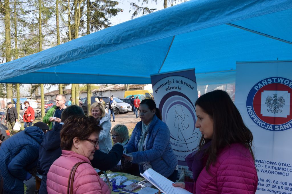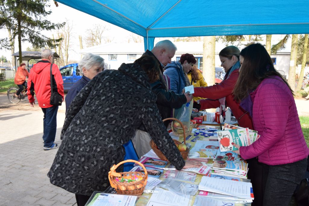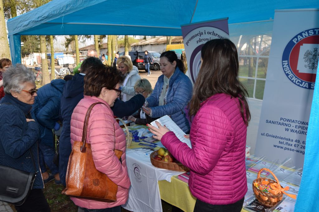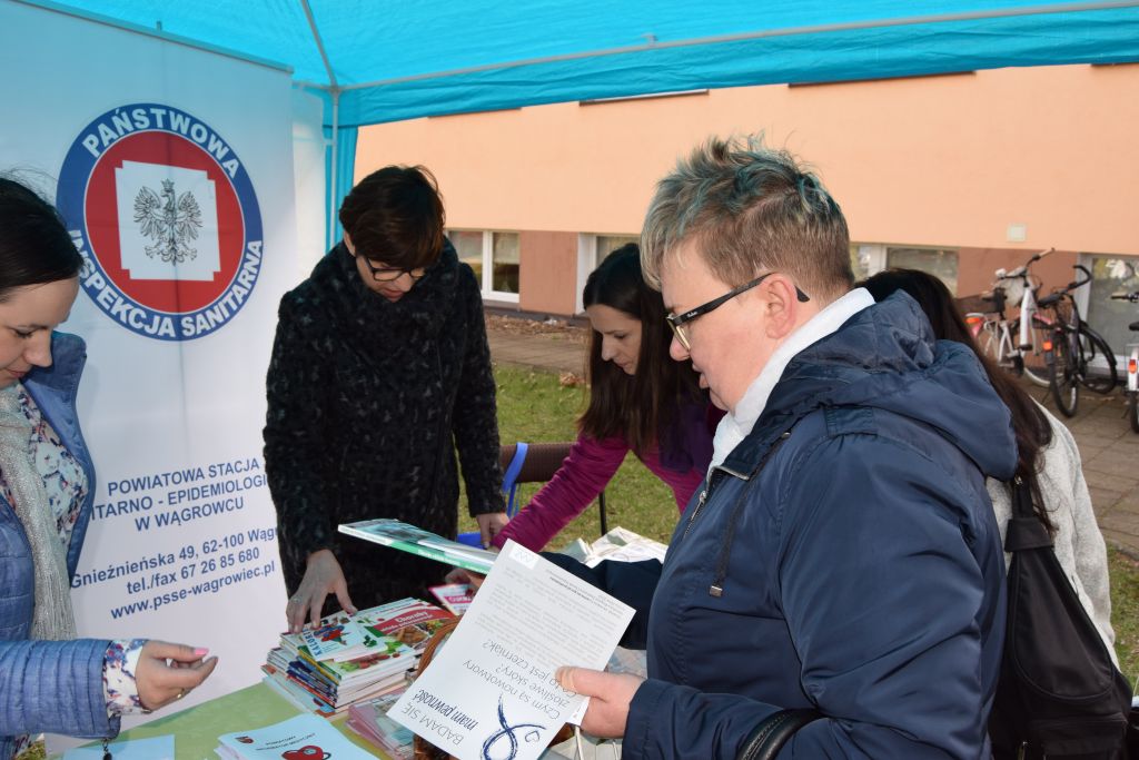 Mieszkańcy powiatu wągrowieckiego, którzy w czwartek 12 kwietnia udali się na targowisko miejskie w Wągrowcu, mogli przed siedzibą Powiatowej Stacji Sanitarno - Epidemiologicznej wziąć udział w akcji zdrowotnej z okazji Światowego Dnia Zdrowia. Osobom zainteresowanym pielęgniarki z Ośrodka Medycyny Rodzinnej w Wągrowcu bezpłatnie mierzyły ciśnienie tętnicze krwi oraz badały poziom cukru we krwi. Pracownicy Oświaty Zdrowotnej i Promocji Zdrowia PSSE w Wągrowcu udzielali porad zdrowotnych i rozdawali ulotki. Odbył się również konkurs wiedzy o zdrowiu przeprowadzony przez przedstawicielki Wydziału Spraw Obywatelskich i Zdrowia Starostwa Powiatowego w Wągrowcu oraz Oświaty Zdrowotnej i Promocji Zdrowia PSSE w Wągrowcu. Prawidłowe odpowiedzi zostały nagrodzone gadżetami promującymi powiat oraz książkami o tematyce zdrowotnej. W akcji wzięło udział ok. 100 osób, które były pozytywnie zaskoczone tą inicjatywą, a także zadowolone z możliwości wykonania badań, a z tych skorzystało ok. 70 osób.