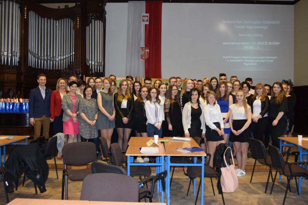 W piątek 13 kwietnia w auli Zespołu Szkół nr 2 im. ppłk. dr. Stanisława Kulińskiego w Wągrowcu odbyło się VI spotkanie samorządów uczniowskich szkół Powiatu Wągrowieckiego pod hasłem "Samorządy debatują: Co jeszcze można zrobić….". Spotkanie oficjalnie otworzył Starosta Wągrowiecki Tomasz Kranc, witając wszystkich przedstawicieli samorządów szkolnych oraz ich opiekunów. Następnie w imieniu gospodarza głos zajęła wicedyrektor ZS2 Lucyna Żerkowska-Chełminiak.