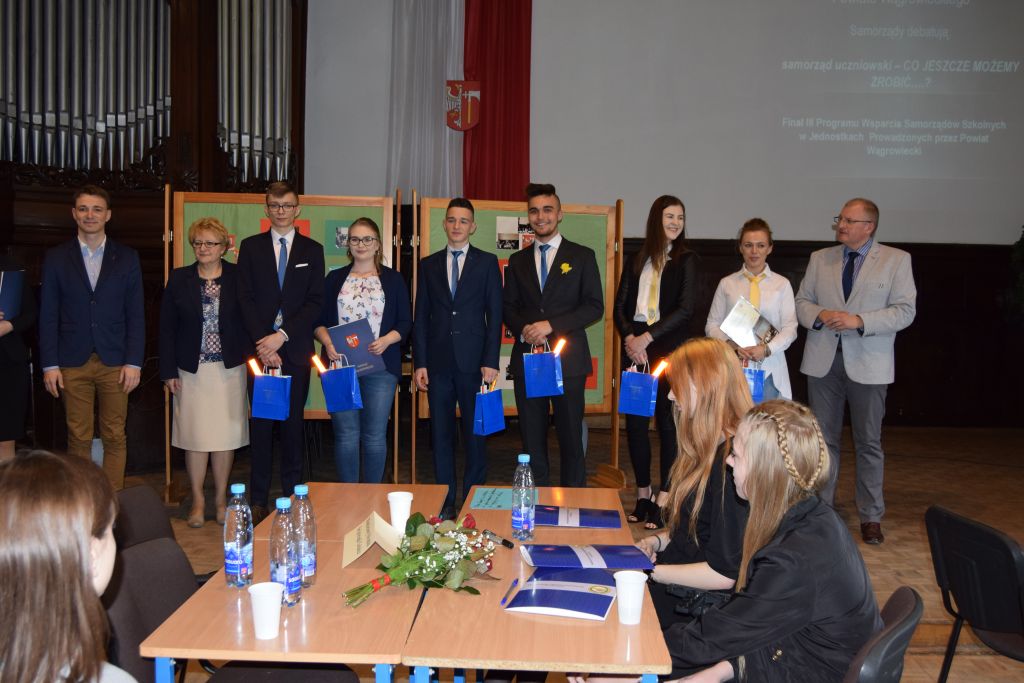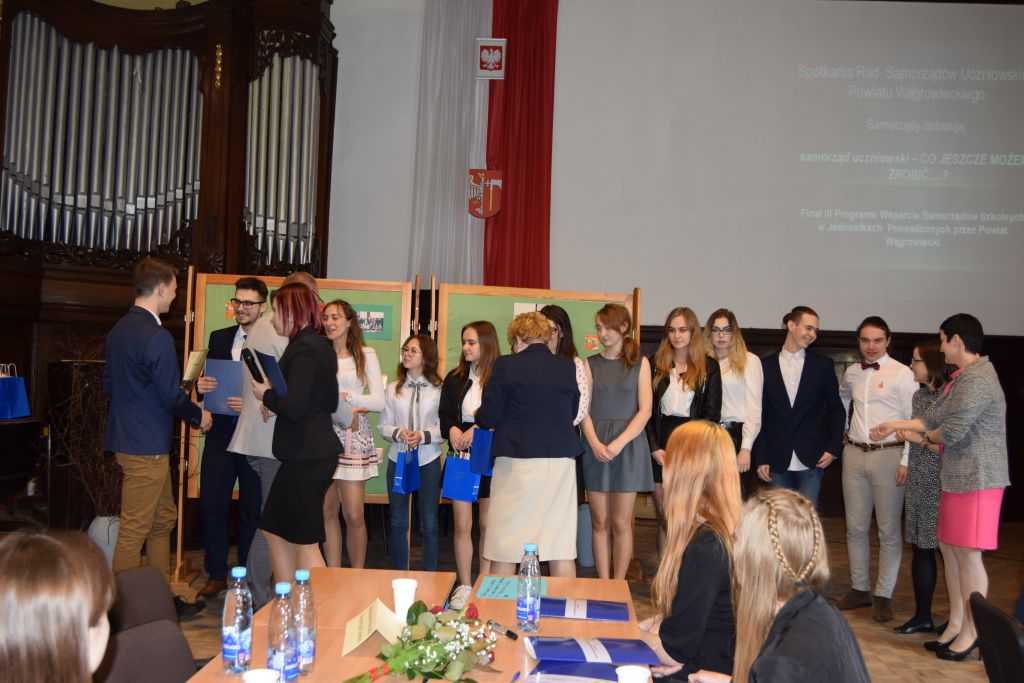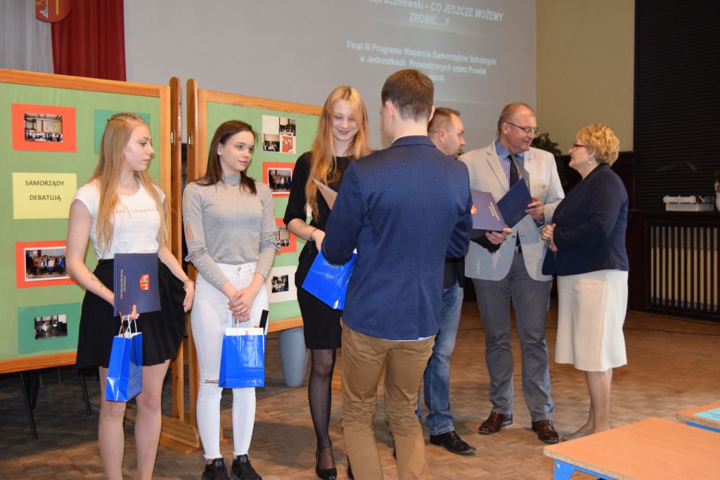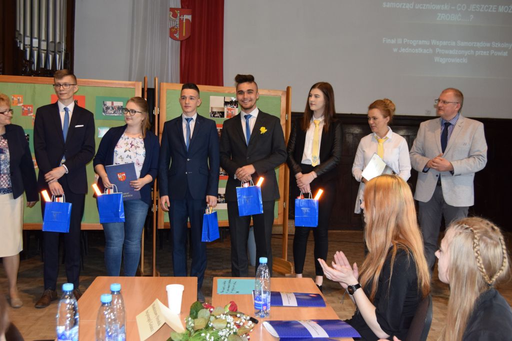 Pozostałe samorządy uczniowskie otrzymały wyróżnienia, a gratulacje i nagrody wręczyli Małgorzata Osuch -Przewodnicząca Rady Powiatu Wągrowieckiego,Robert Woźniak- Członek Zarządu Powiatu Wągrowieckiego oraz Piotr Pałczyński- Przewodniczący Komisji Zdrowia, Polityki Społecznej i Rynku Pracy.