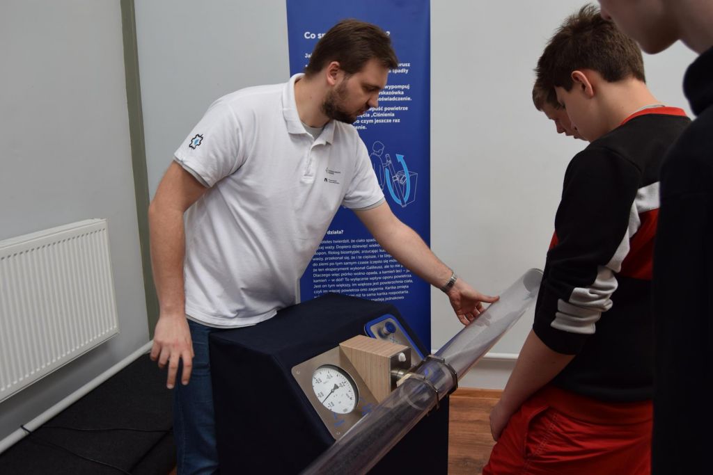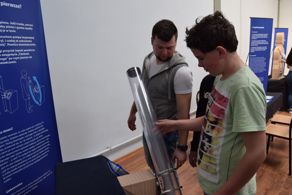 Samodzielne eksperymentowanie pozwala obudzić ciekawość i uczyć się bez wysiłku znanego z lekcji – siadając na wirującym krześle, można doświadczyć, jak w praktyce działa teoria zachowania momentu pędu. Można też m.in. przetestować uwięzioną piłkę, wirujące krzesełko, kulę plazmową, półkule magdeburskie i trójwymiarowy model anatomiczny ludzkiego ciała. Dla uczniów przygotowany został także „Poradnik młodego naukowca” – propozycje doświadczeń, które mogą tam znaleźć i samodzielnie przeprowadzić w domu, pozwalają dłużej cieszyć się kontaktem z nauką w mniej poważnej formie.