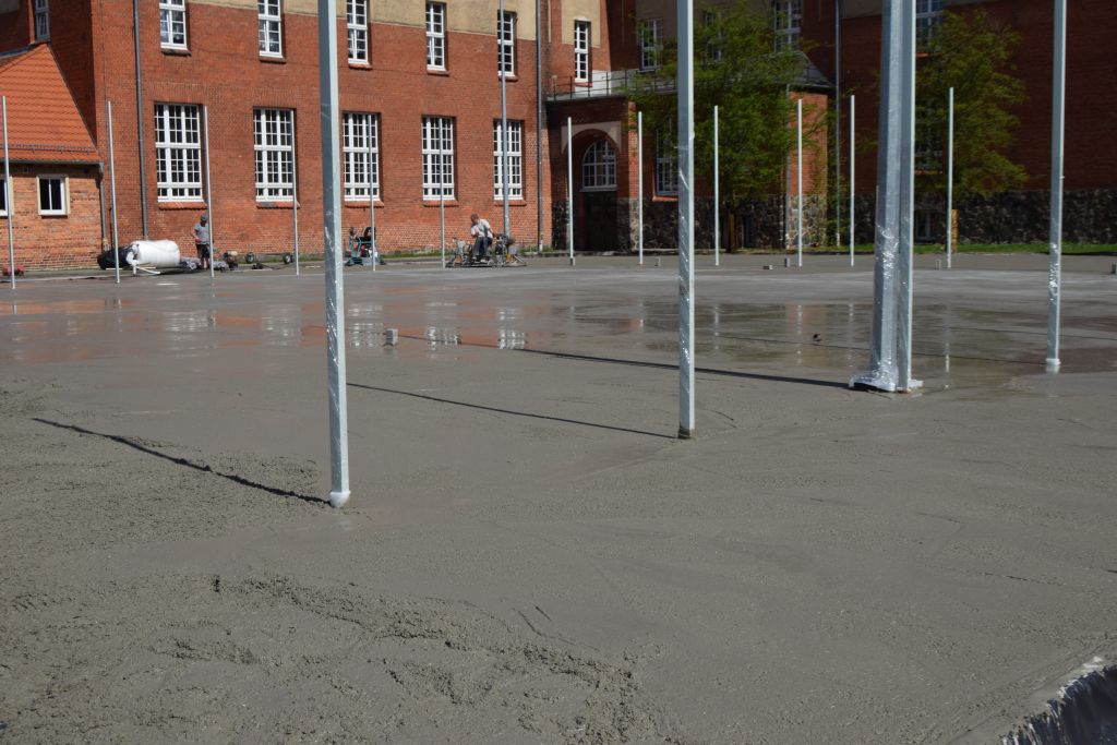 Przy dwóch szkołach prowadzonych przez Powiat Wągrowiecki powstają wielofunkcyjne boiska sportowe. Boisko przy ZS w Gołańczy już prawie gotowe. Na boisko przy ZS nr 2 w Wągrowcu wczoraj (19 kwietnia) wylano 316 metrów sześciennych betonu (36 betoniarek).
