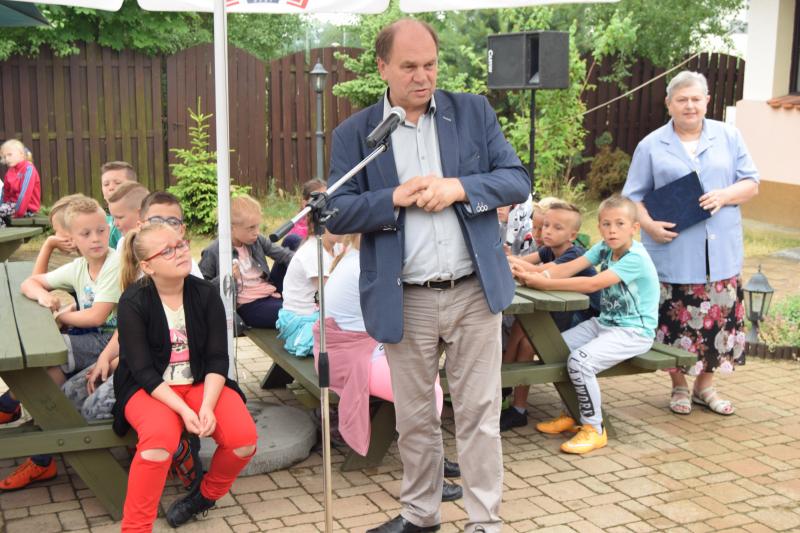 Wągrowiecki Oddział Towarzystwa Przyjaciół Dzieci zorganizował w poniedziałek 18 czerwca plenerową imprezę „Bezpieczeństwo Komunikacyjne – Rozpocznij Bezpieczne Wakacje z TPD 2018”. O tym, jak zwracać uwagę na zasady bezpieczeństwa podczas letniego wypoczynku dowiedzieli się uczniowie Szkoły Podstawowej nr 3 w Wągrowcu z oddziału przy ul. Letniej. W festynie uczestniczył Starosta Wągrowiecki Tomasz Kranc, który życzył dzieciom udanych i przede wszystkim bezpiecznych wakacji.